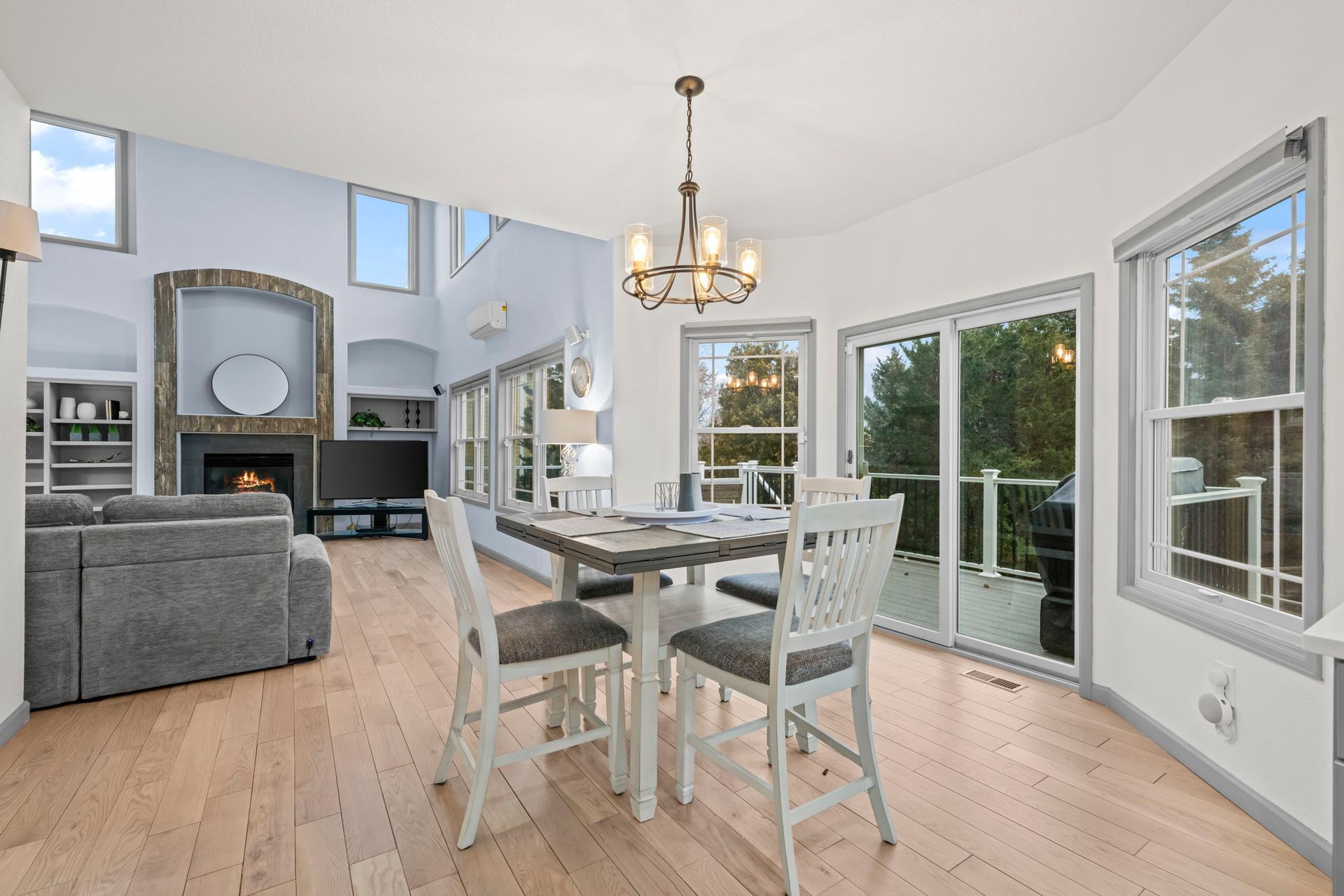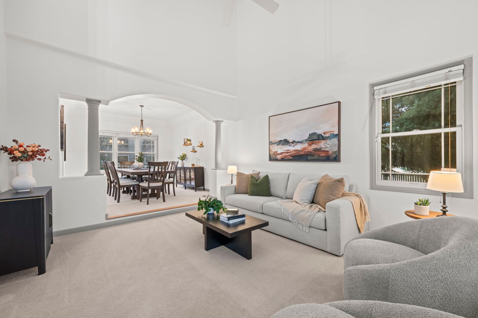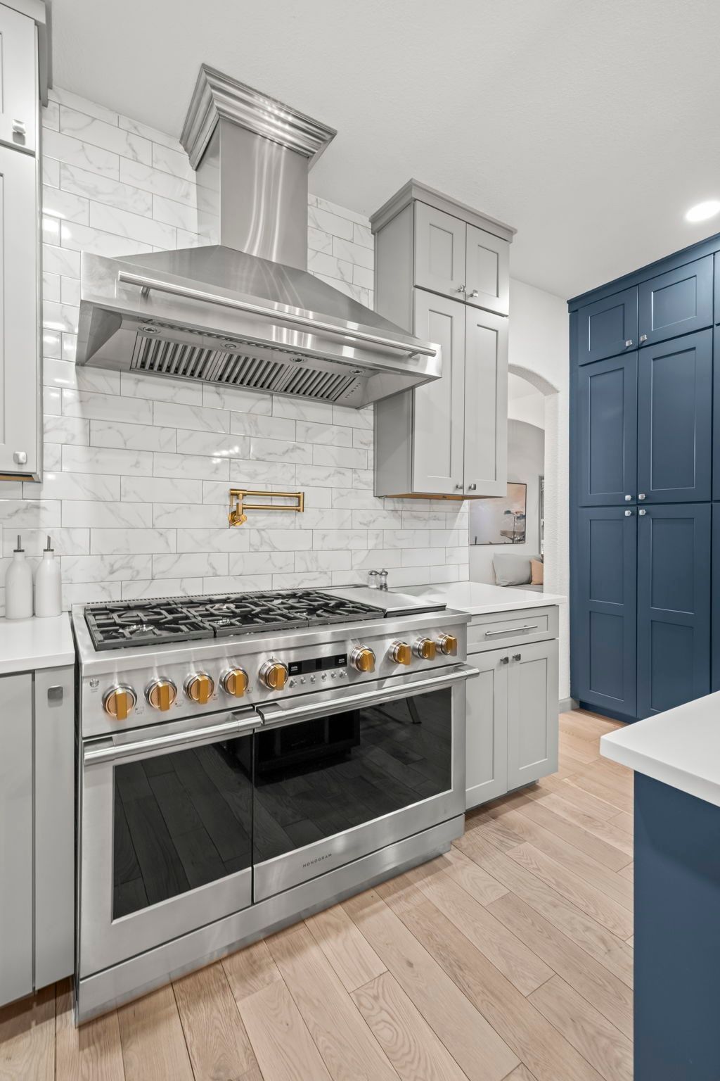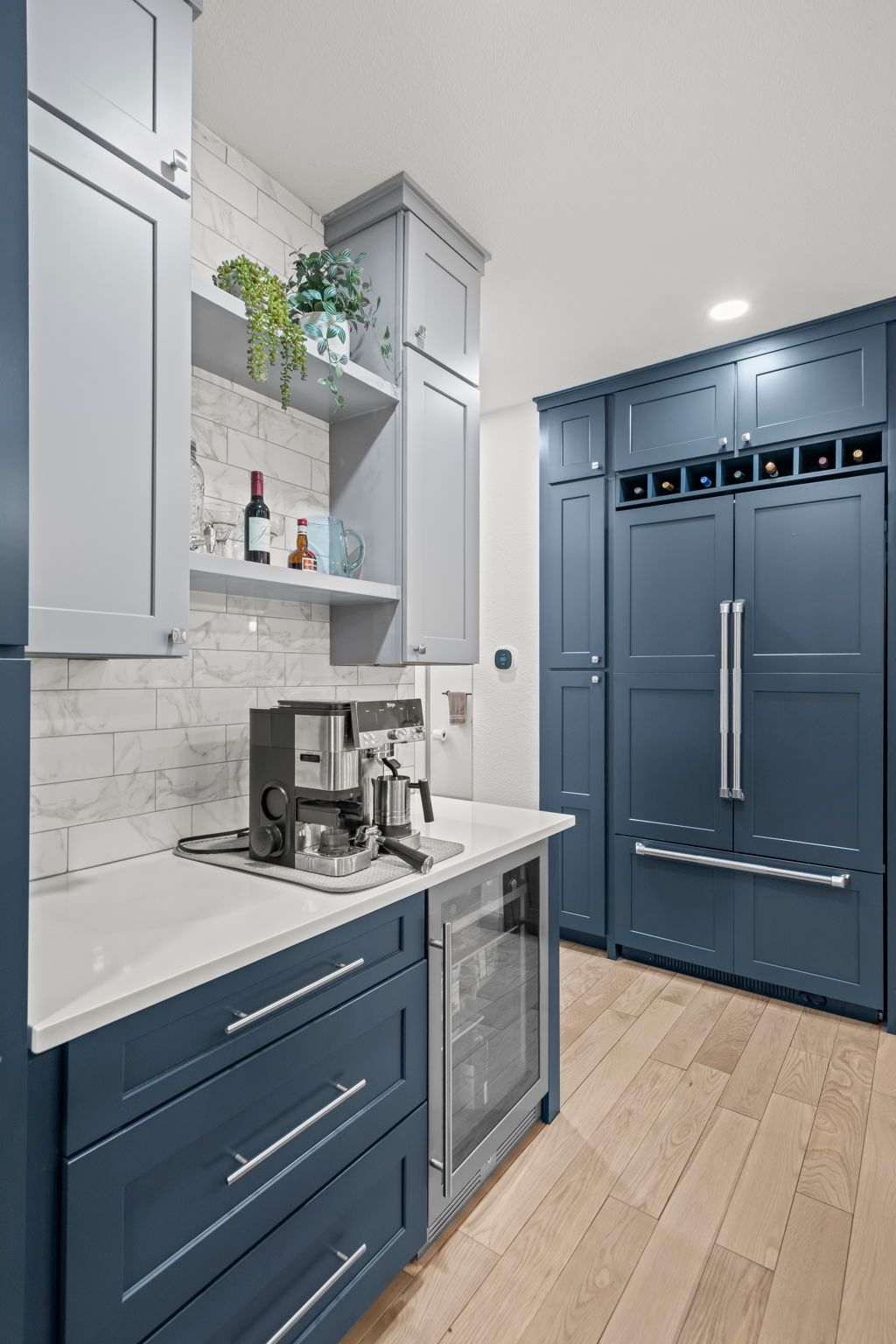 A stunning high-end kitchen renovation is the heart of the home and one of many recent updates, including new carpet, paint, flooring, windows, updated bathrooms, lighting & more. As you step inside discover soaring ceilings, a newly remodeled staircase and extensive white oak flooring on the main-level. The chef's kitchen is a true standout, featuring custom cabinetry, quartz counters, stylish backsplash, large center island w/ a waterfall counter and built-in shelving, beverage fridge, high-end stainless appliances and 6-burner gas stove with hood.