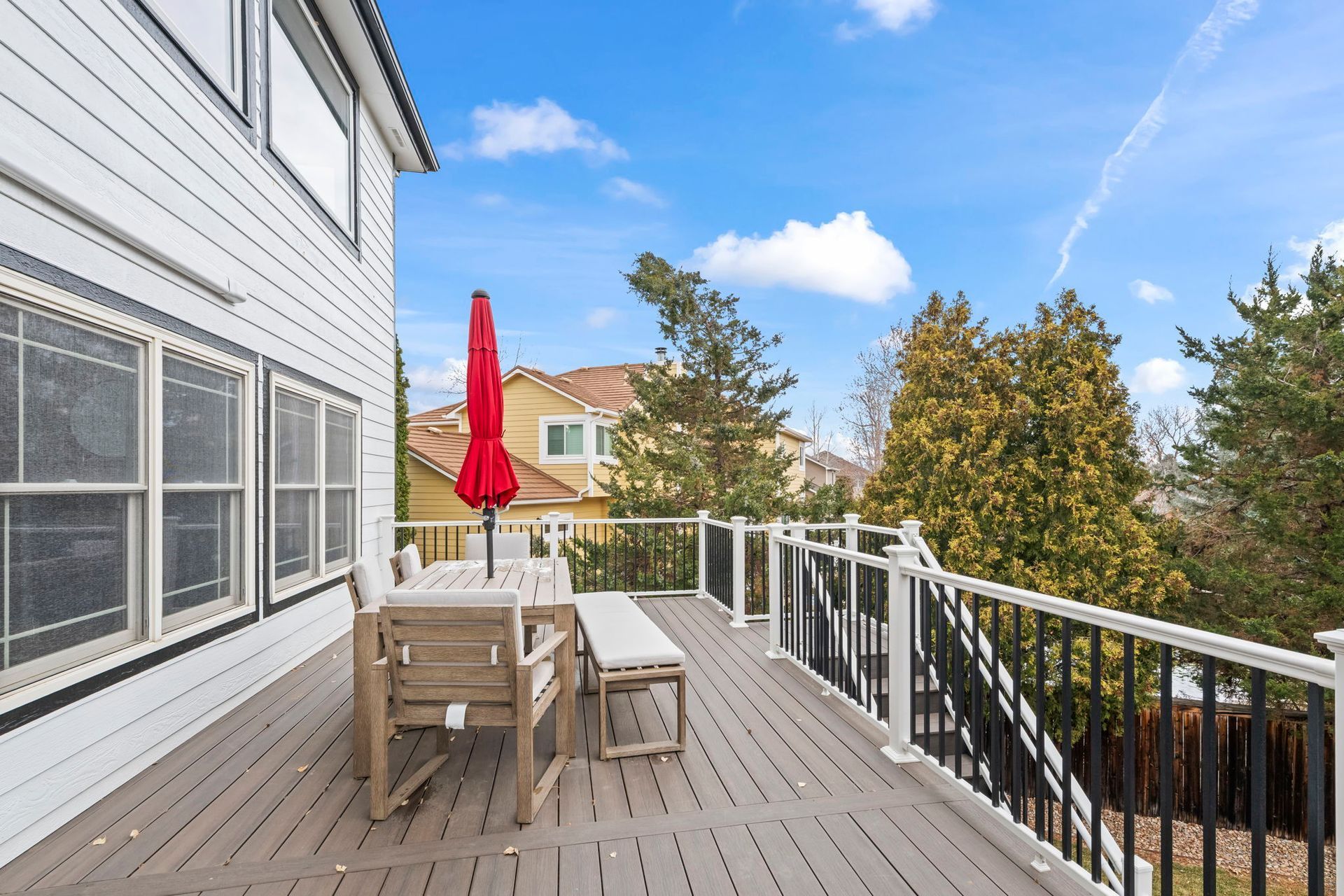 The finished walk-out lower level expands your living space even further and offers BRAND NEW CARPET, a flexible rec/bonus room, fitness area, 5th bedroom and bath, and is the ideal space for guests, teens, or home office. Outside enjoy mature landscaping, fenced yard & a newer low maintenance trex deck. Ideally located near the Eagle Trace Golf Course, Broomfield Commons Park & Sports Complex, Paul Derda Rec Center and easy commuter access to both Denver and Boulder, this home truly has it all - space, style, updates, and an exceptional location.